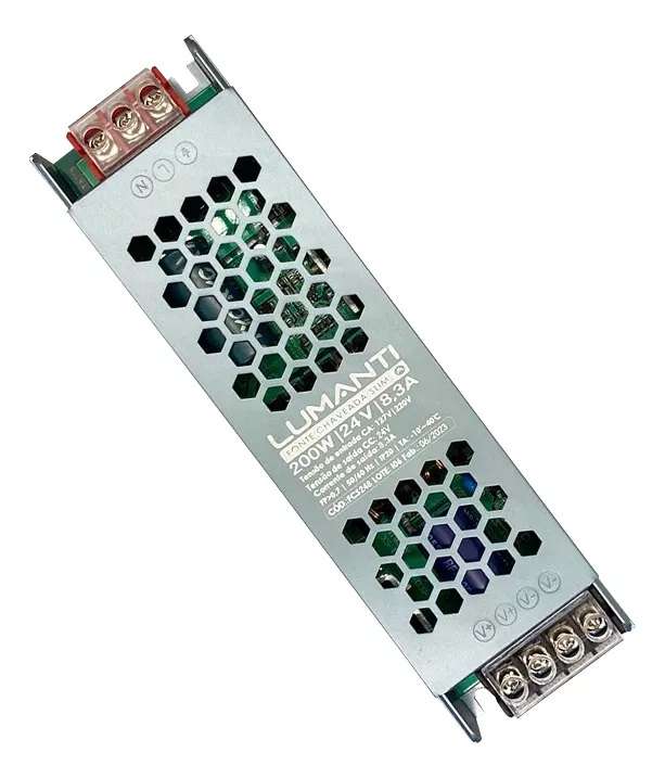 As fontes LED operam tanto em 127V quanto 220V, possuindo tecnologia Autovolt que se autorregula de acordo com a rede elétrica a qual estão instaladas. É importante citar que as fontes Lumanti não são dimerizáveis, ou seja, não podem ser instaladas após um dispositivo de dimerização, dessa forma, os sensores de dimerização presentes na nossa linha de fitas LED devem ser instalados sempre após a fonte.
