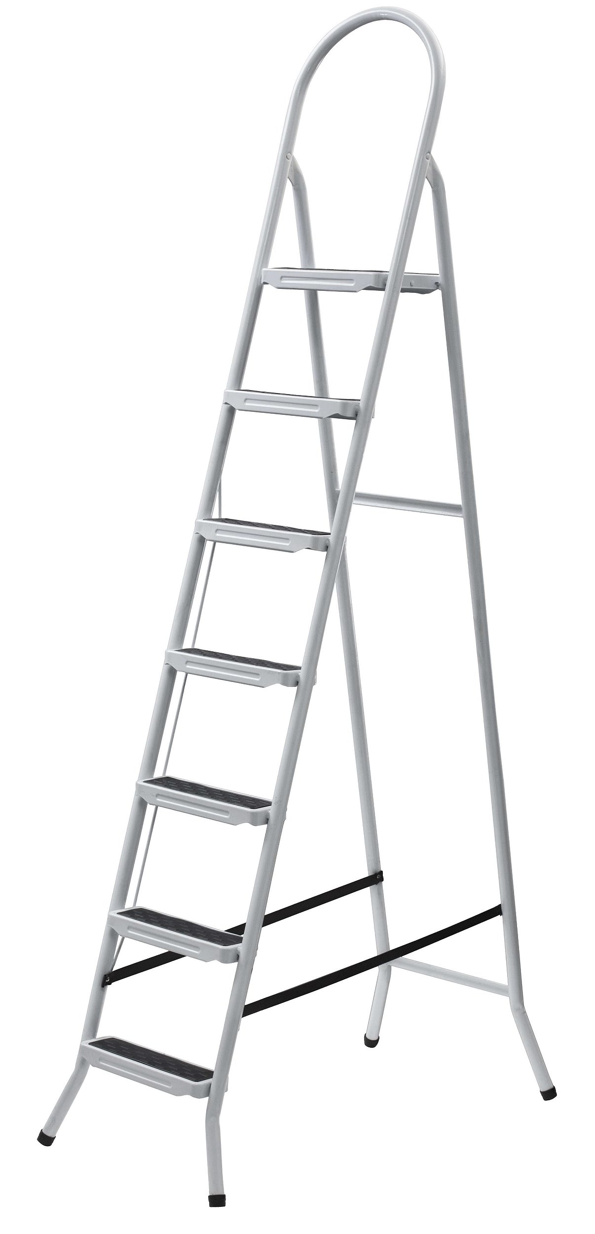 Escada em aço com pintura eletrostática a pó na cor branca para uso doméstico.