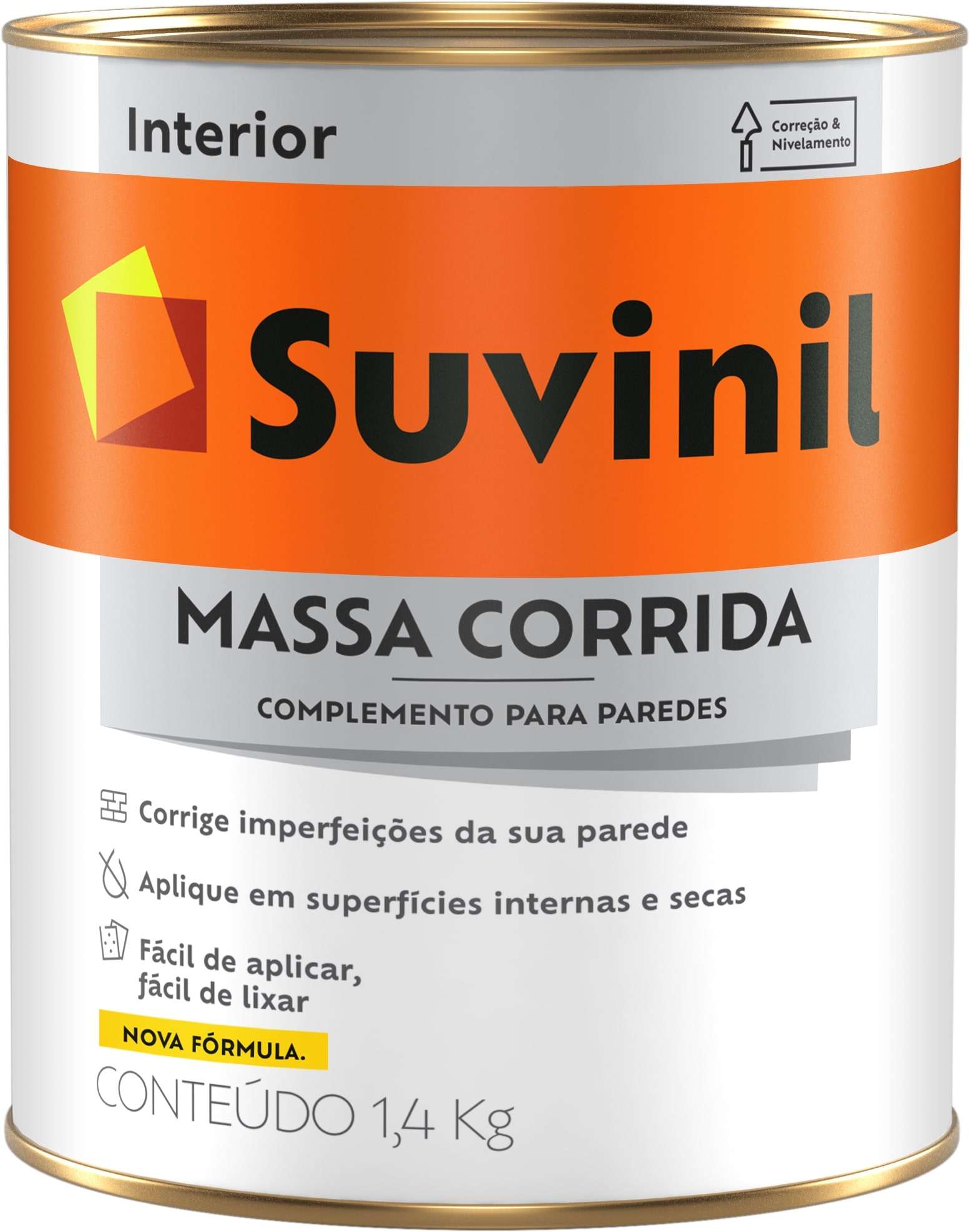 A Massa Corrida Suvinil é indicada para uniformizar. nivelar e corrigir pequenas imperfeições em superfícies internas de alvenaria e concreto. Com alto poder de enchimento. elevada consistência. ótima aderência. sua secagem é rápida e seu odor é baixo. Rende até 4m2