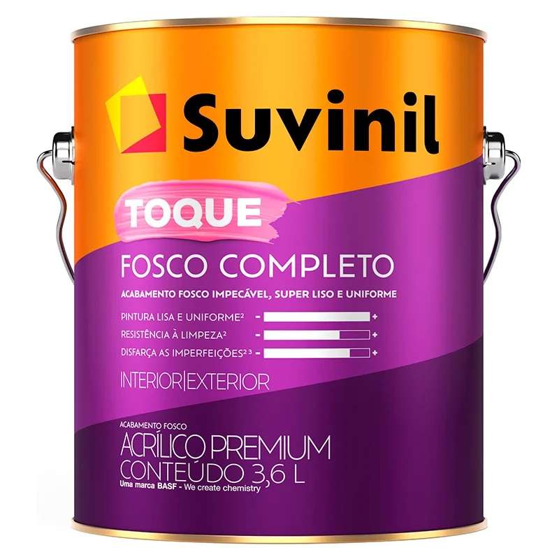 Ao escolher a Suvinil Proteção Total para pintar a parede externa. você garante alto rendimento. Ela está disponível em embalagens de 3.6 L e 18 L. que cobrem até 17 m² e 85 m². respectivamente.