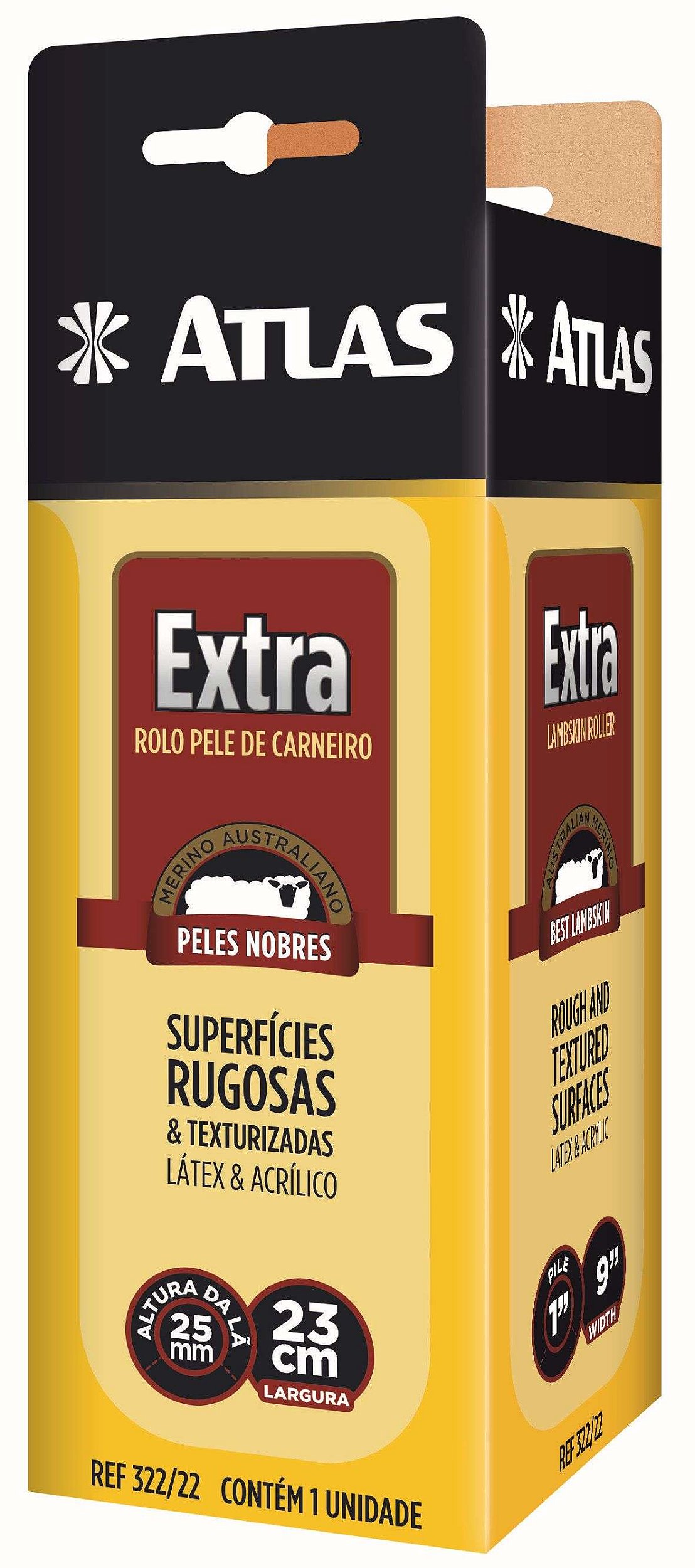 *Rolo de pele de carneiro merino australiano com lã extra longa e densa de 25mm. Grande capacidade de retenção de tinta. Indicação de uso: Ideal para pinturas com tinta látex, acrílico, pva, óleo , esmalte em paredes rugosas ou texturizadas.