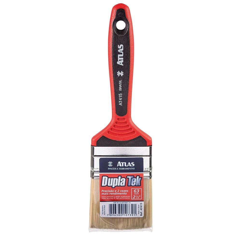 Trincha Dupla de cerdas sintéticas com tecnologia Plumatek de fios formato estrelado. Melhor acabamento, maior durabilidade e recortes mais precisos para todo o tipo de tinta.
